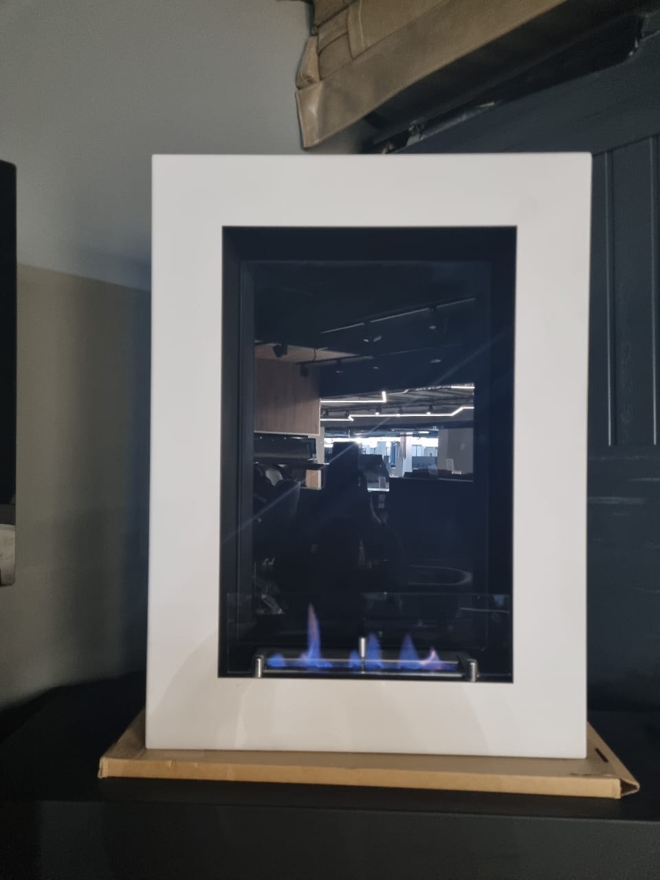Закаленное стекло на корпусе выполняет не только декоративную функцию. Оно защищает огонь от сквозняков и сокращает безопасное расстояние от него до других предметов интерьера со 100 см до 40 см.