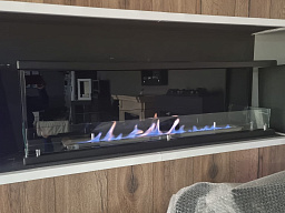 Если взять стандартный биокамин, расход топлива составит 1 л на 3-4 часа. При этом миниатюрные модели потребляют в несколько раз меньше, а габаритные очаги, длиной в метр и более, израсходуют литр за 1,5-2 часа работы.