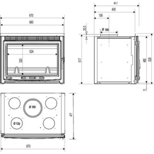 Каминная топка-вставка FM 761 L. Боковое открывание дверцы.